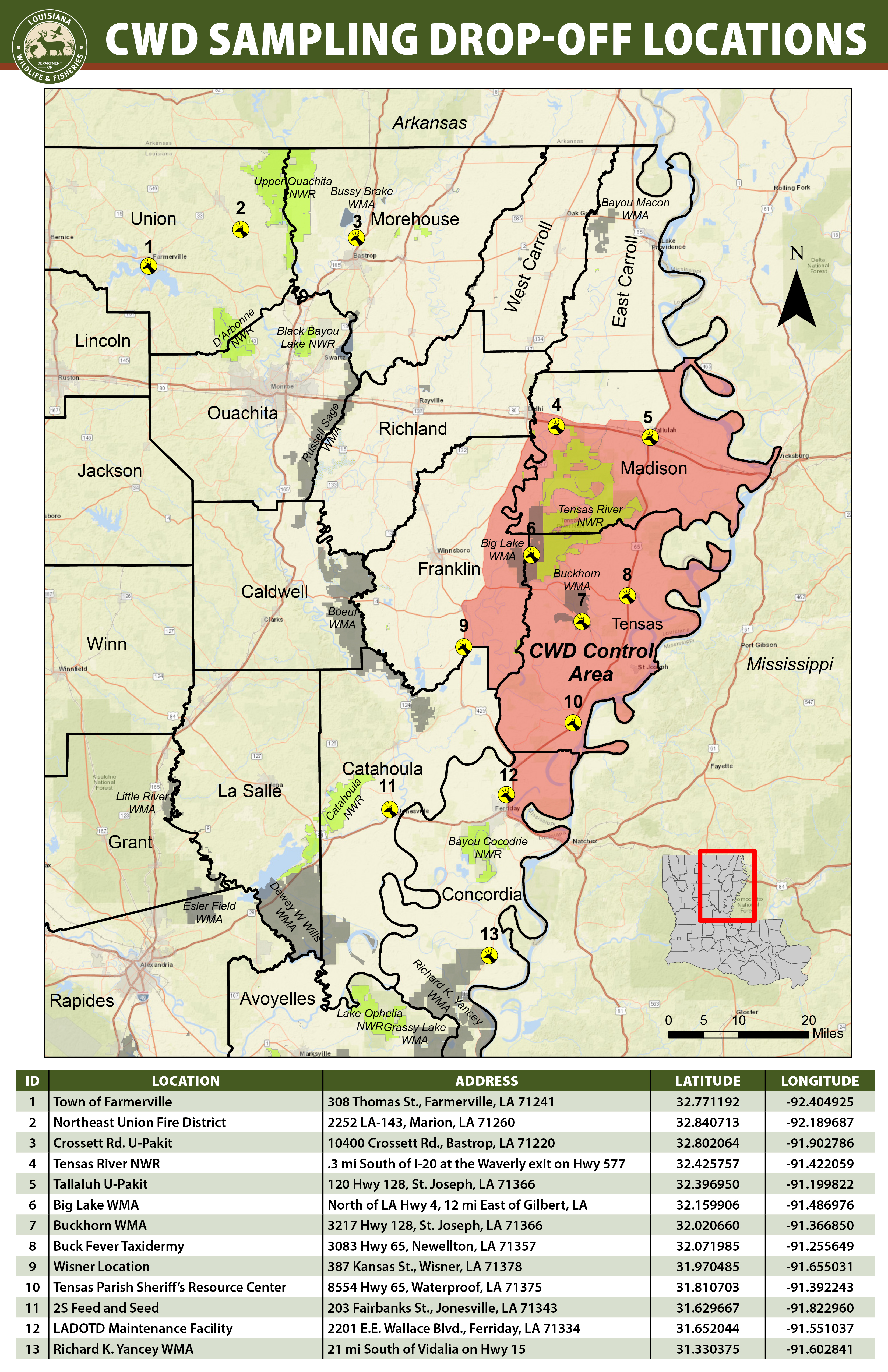LDWF Adds CWD Testing Drop off Location in Tensas River NWR