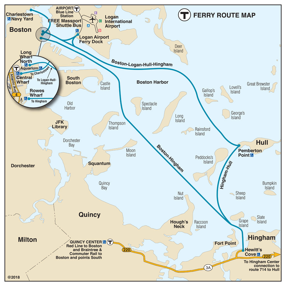 Mbta Ferry Map MBTA Ferry Route Map (2018) โ MBTAgifts: MBTA Ferry service could be delayed because of whale traffic. A 2-year-old humpback whale is currently spending time in Boston Harbor. The whale was first spotted two weeks ago. Delays will happen on . MBTA ferry commuters could experience delays heading to Boston today, but not for the reason you might think. A juvenile humpback whale in Boston Harbor is causing delays on the Lynn, Hingham/Hull .