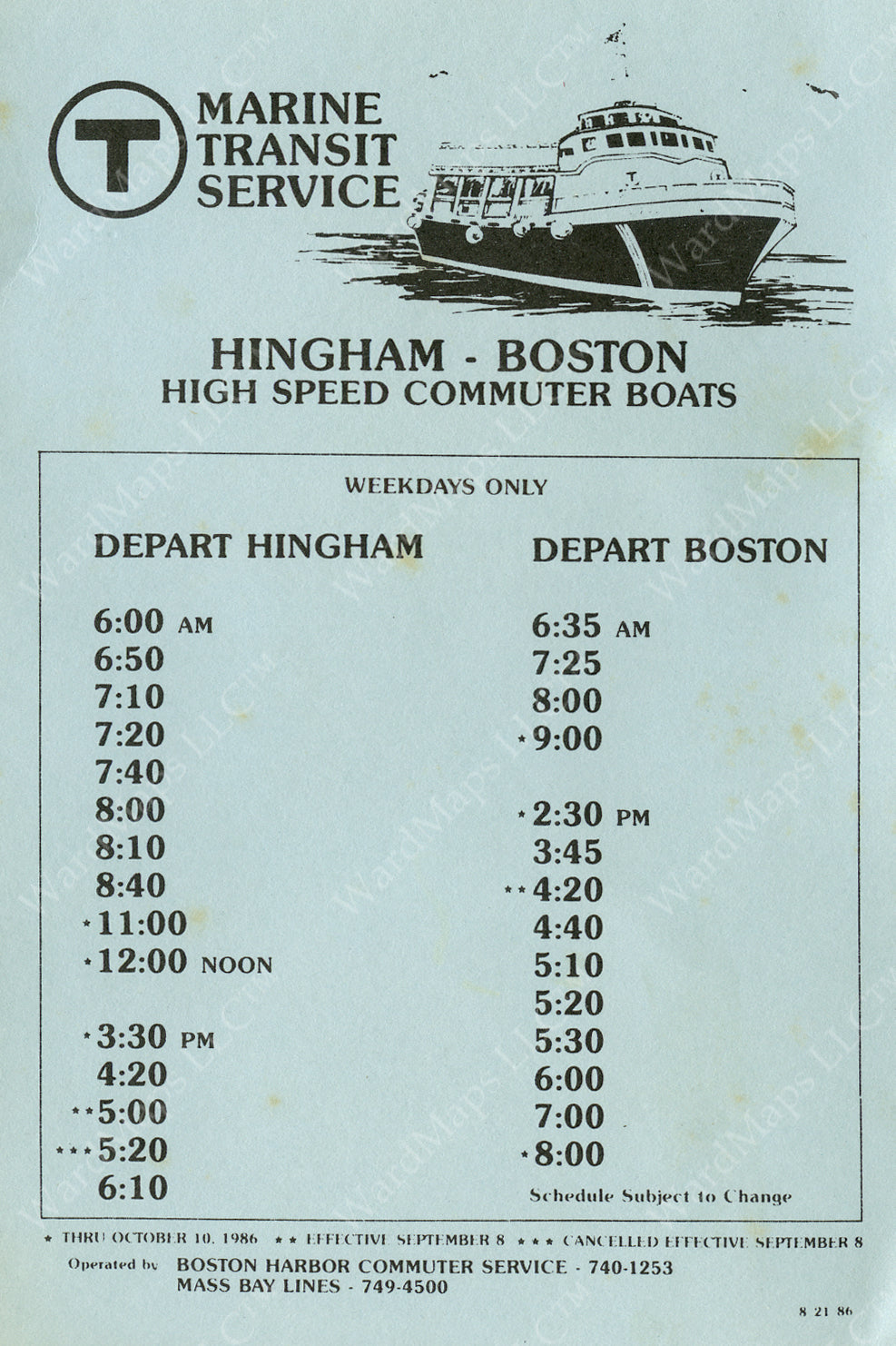 MBTA Hingham Ferry Schedule Card 1986 โ Boston In Transit